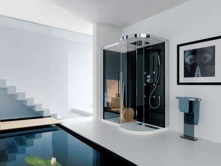 Καμπίνα ντουζιέρας γωνιακή με καλά καθορισμένες γραμμές και χώρους wash & relax, διατίθεται σε διάσταση 170Χ100 καθώς και σε ποικιλία γυαλιών .